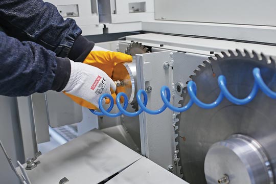 The T-PE-436 and T-PE-434 are very similar models in that they both have the PANELCUT software which is very easy to follow and program and allows for visual drawings to be imported even from different software. The speed of the saw operation can operate up to 150m/min cutter speed and 60m/min for the pusher fence. Another advantage is the simplistic pneumatic system on both machines for swapping around the saws when required, literally taking seconds. Both have safety features that show on the monitor if an error has occurred. Other advantages to these machines are a barcode printer, automated adjustment of saw blade according to panel thickness, automatic lubrication and they can be used in a manual cut operation if required. The major difference between the two machines are the T-PE 436 can cut at a depth of 108mm and the T-PE-434 cutting depth is 72mm.