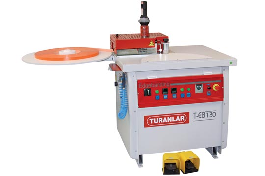The T-EB-130 and T-EB-170 Edgebander are able to complete both curved and straight edging on materials from 0.4 - 3mm thickness but are primarily designed for curved tops that need an edging applied. All edging is applied through the operator controlling the feed through foot pedals and adhesive is applied just before the edging is bonded to the substrate.
