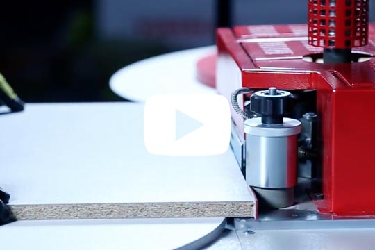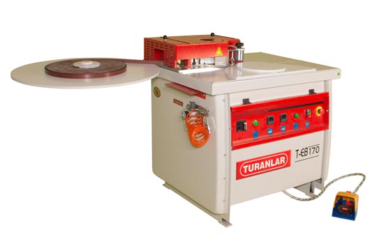 The T-EB-130 and T-EB-170 Edgebander are able to complete both curved and straight edging on materials from 0.4 - 3mm thickness but are primarily designed for curved tops that need an edging applied. All edging is applied through the operator controlling the feed through foot pedals and adhesive is applied just before the edging is bonded to the substrate.