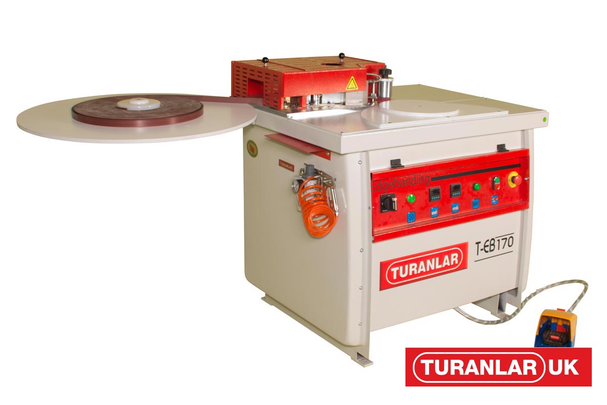 A key feature on the T-EB-130 is hot air blower unit which ensures the material sticks more effectively to the substrate this feature is not found on the T-EB-170. The edging is cut at the end but trimming on the top and bottom of the panel would need to be done separately and Turanlar UK can also provide a machine in companionship with these type of edgebanders which is the T-FE-140 (Please contact us direct for more details on this machine).