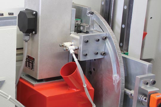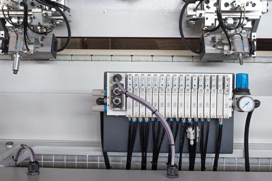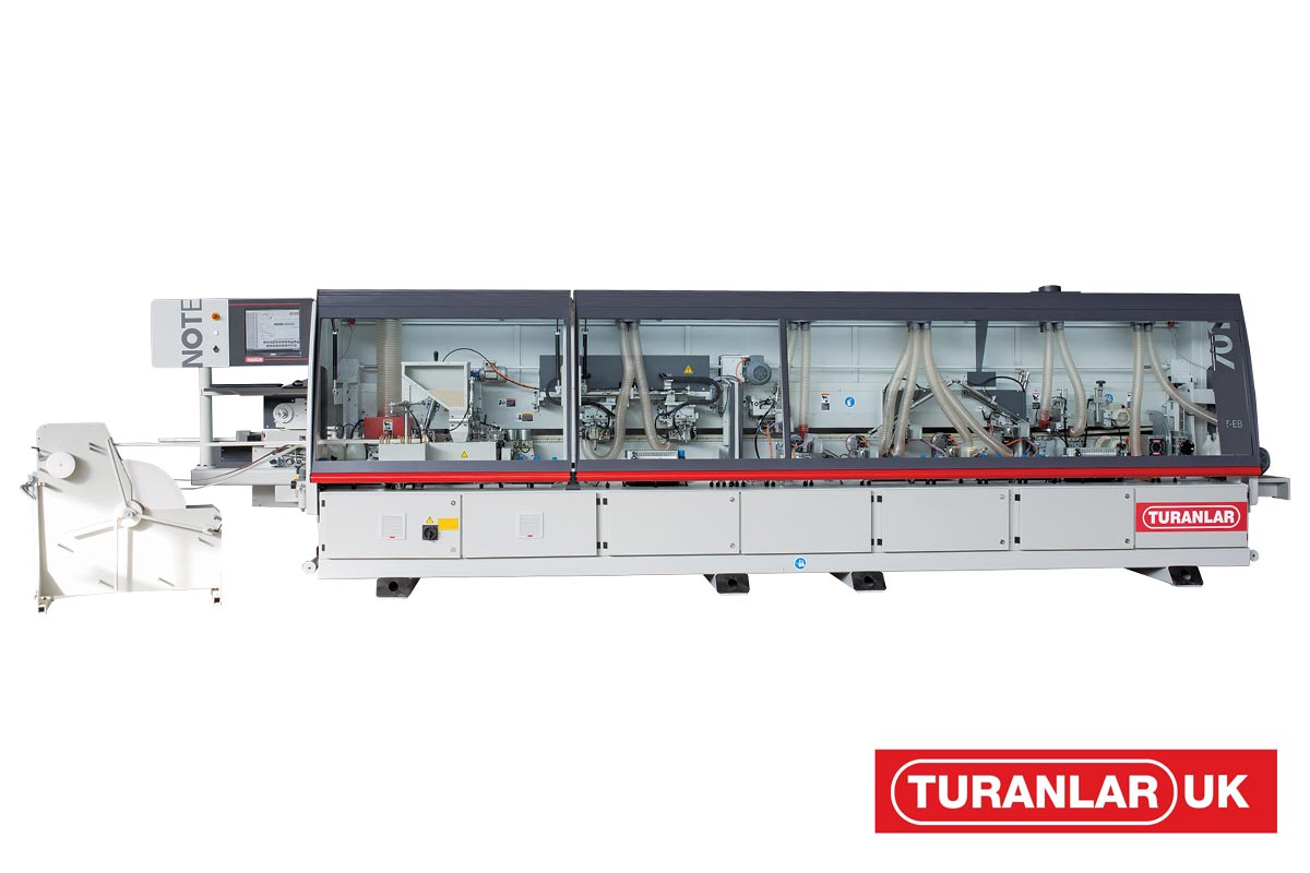 It comes with high frequency motors, electrical components and pneumatic systems all supplied by the most reputable European manufacturers this ensures in guaranteeing quality production standards and a long service life. And as on the majority of Turanlar UK edgebanders it comes with the Anti-adhesion spray system applied to the panels before pre-milling and gluing.