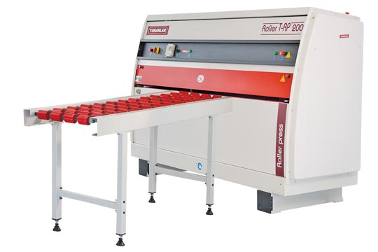 Nip rollers as most commonly called in the UK market (other names may include pinch rollers or roller press) are used for flat bonding various materials to a substrate with the help of a contact adhesive. Laminate & PVC are what a vast majority of our customers bond to Chipboard, MDF or Plywood chipboard; however we have customers who have used this machine to stick aluminium to a substrate or veneer in some instances. These machines are not limited with the length of the work pieces and are more energy efficient than regular presses .There isn't a time limit on these machines either like on presses. They take up less floor space even with their in feed and out feed tables and are a must for continuous mass flat bonding production when using contact adhesives to stick products together. All our nip rollers come with infeed and outfeed roller tables as seen on the images. They also come standard with motorised thickness adjustment rather than manual as on older machines.