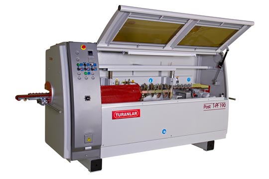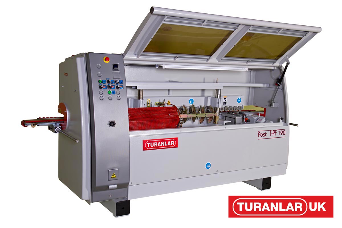 This is the most simplistic throughfeed postformer that Turanlar supply. Unlike the T-PF-280 and T-PF-590, it does not come with a triple cartridge carousel or infrared heaters. This machine is affordable for small manufacturers who have a need for postformed panels/worktops but will not vary from their specification. It is a basic entry level throughfeed postformer and should only be considered if you have a small output of postformed products.