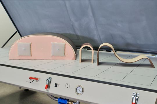 The professional vacuum press model is especially designed for all trained woodworkers and craftsman who need a powerful vacuum press for woodworking and thermoforming during their day to day business and specific projects. Equipped as standard with a 40m³/h vacuum pump capacity, the membrane press offers ideal characteristics for professional woodworking and fulfils the requirements for 3D thermoform applications. Typical press applications like wood panel veneering and laminating as well as bending plywood is not a problem on this machine. For more information please contact us.