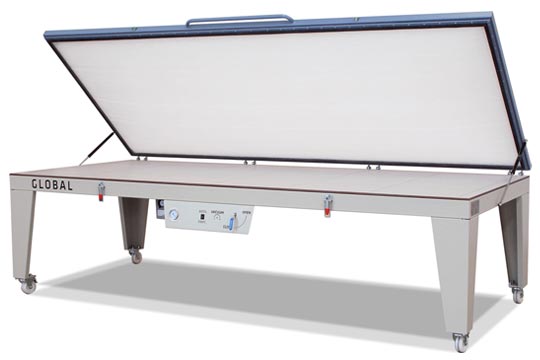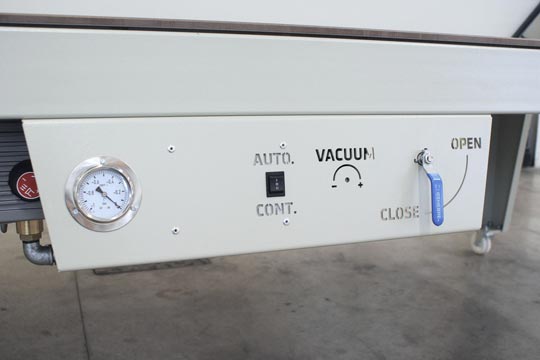 The standard vacuum press model is a cost efficient vacuum membrane press that provides ideal solutions for woodworking such as veneering, laminating and bending different kinds of wood without compromising quality. It is designed for individual and up to medium production capacities. Typical press applications are wood panel veneering and laminating as well as bending plywood. Equipped with a silicone membrane the press is also suitable for 2D thermoforming of acrylic solid surface material and similar composite materials. For more information please contact us.
